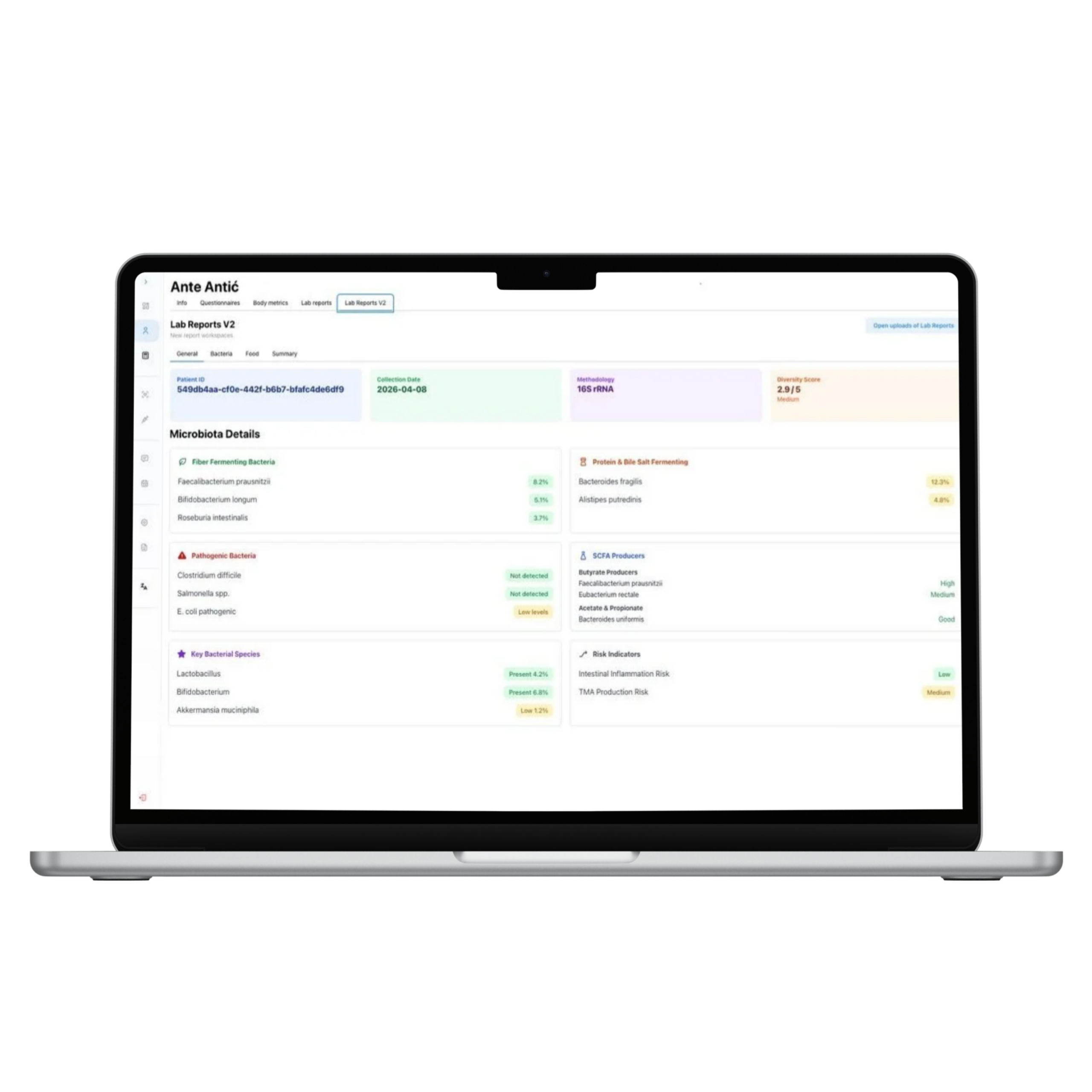 Optibiomics pretvara podatke u konkretne prehrambene preporuke, bez obzira radite li s pacijentima, klijentima ili sportašima.